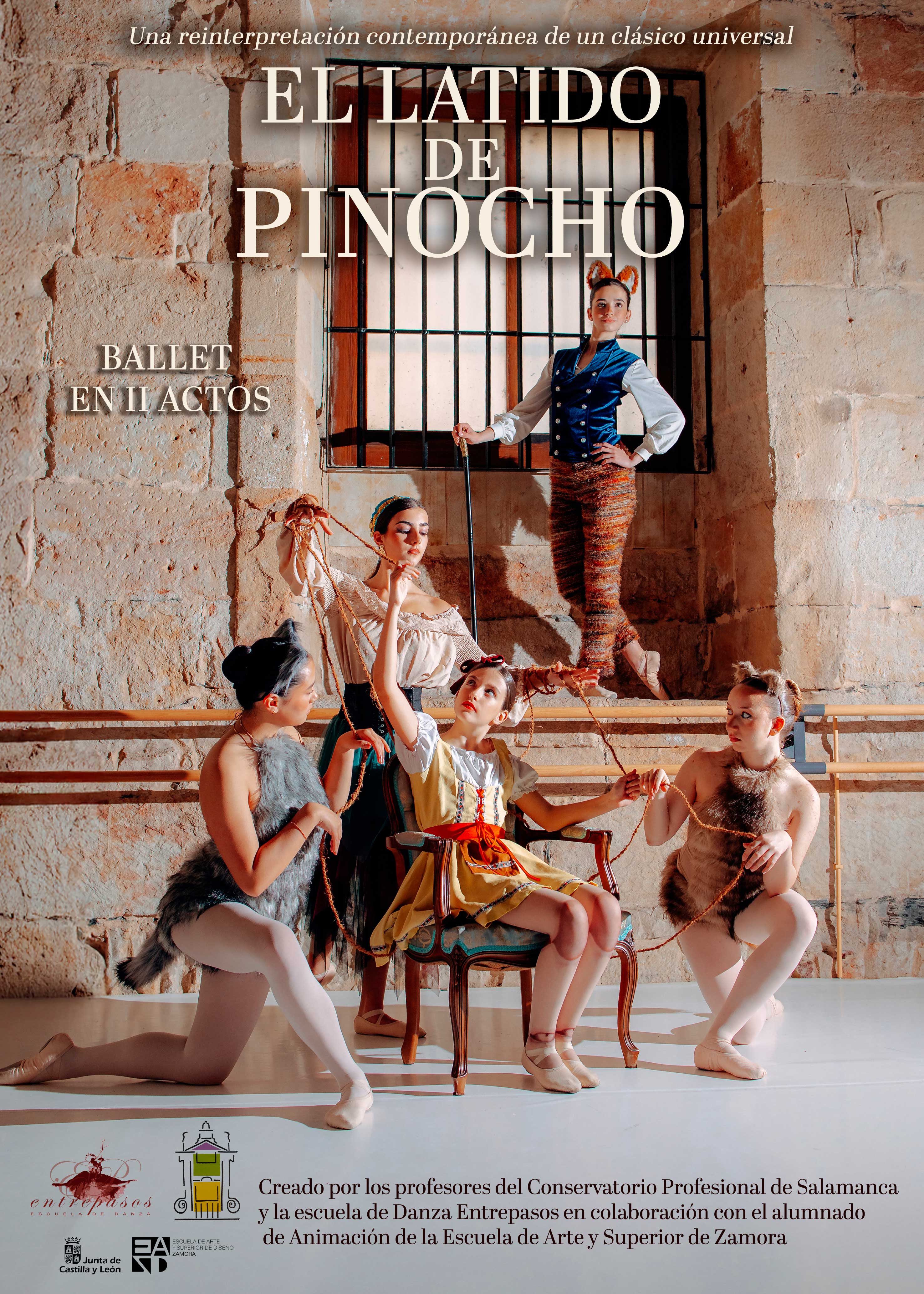 El Latido de Pinocho es una creación escénica que reinterpreta un relato universal desde una mirada contemporánea y profundamente emocional. Creado por los profesores del Conservatorio Profesional de Salamanca y la escuela de Danza Entrepasos, este ballet nace desde cero como un diálogo entre música en directo, movimiento y creación visual, donde cada elemento late al unísono. Lejos de centrarse en la figura literal del muñeco, la obra propone un viaje interior: el despertar de una conciencia, el impulso de convertirse en algo más, la búsqueda de una identidad propia.