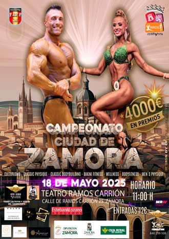 Campeonato de fisicoculturismo y fitness Ciudad de Zamora, una cita ineludible para los amantes del culturismo y el fitness en una jornada llena de competición, emoción y presenciar el talento de atletas de primer nivel. Domingo 18 de mayo de 2025.
