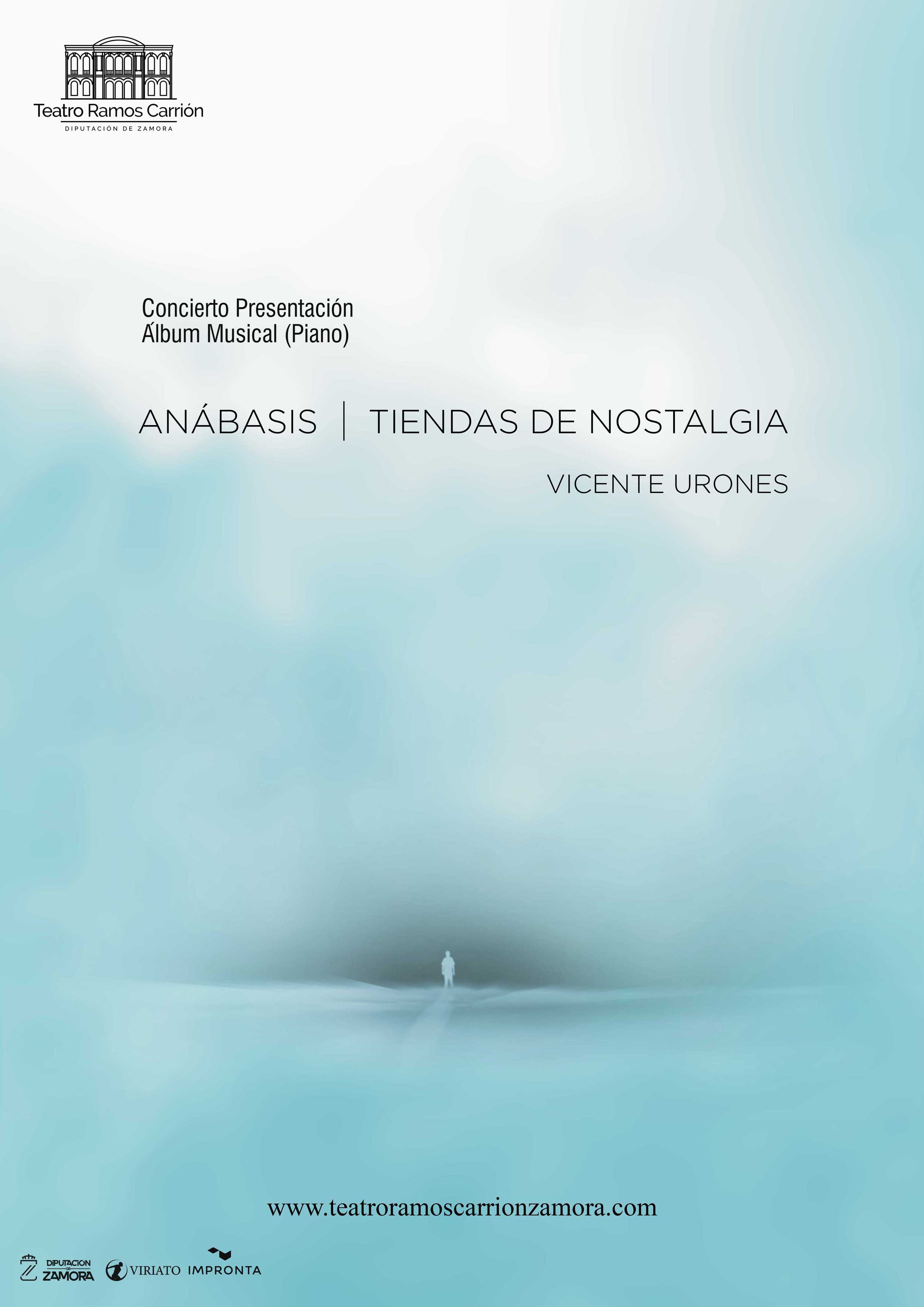 Anábasis y Tiendas de nostalgia, concierto presentación a piano por Vicente Urones, álbum musical dividido en dos partes guardando el mismo estilo minimalista, un viaje al pasado que permite navegar por nuestros recuerdos y emociones. Viernes 30 de mayo de 2025.