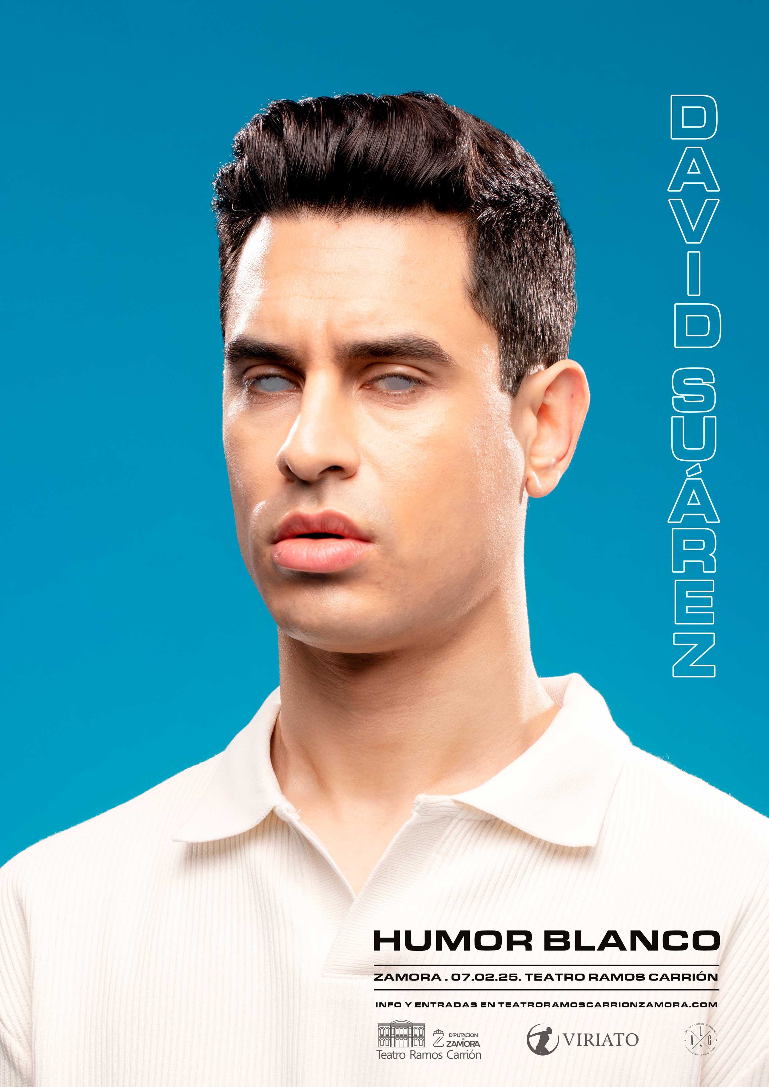 Humor blanco, el nuevo show de David Suárez, reconocido actor, guionista y cómico en el Teatro Ramos Carrión. Las redes sociales han sido siempre su medio, donde ha conseguido viralizar historias memorables. 7 de febrero de 2025