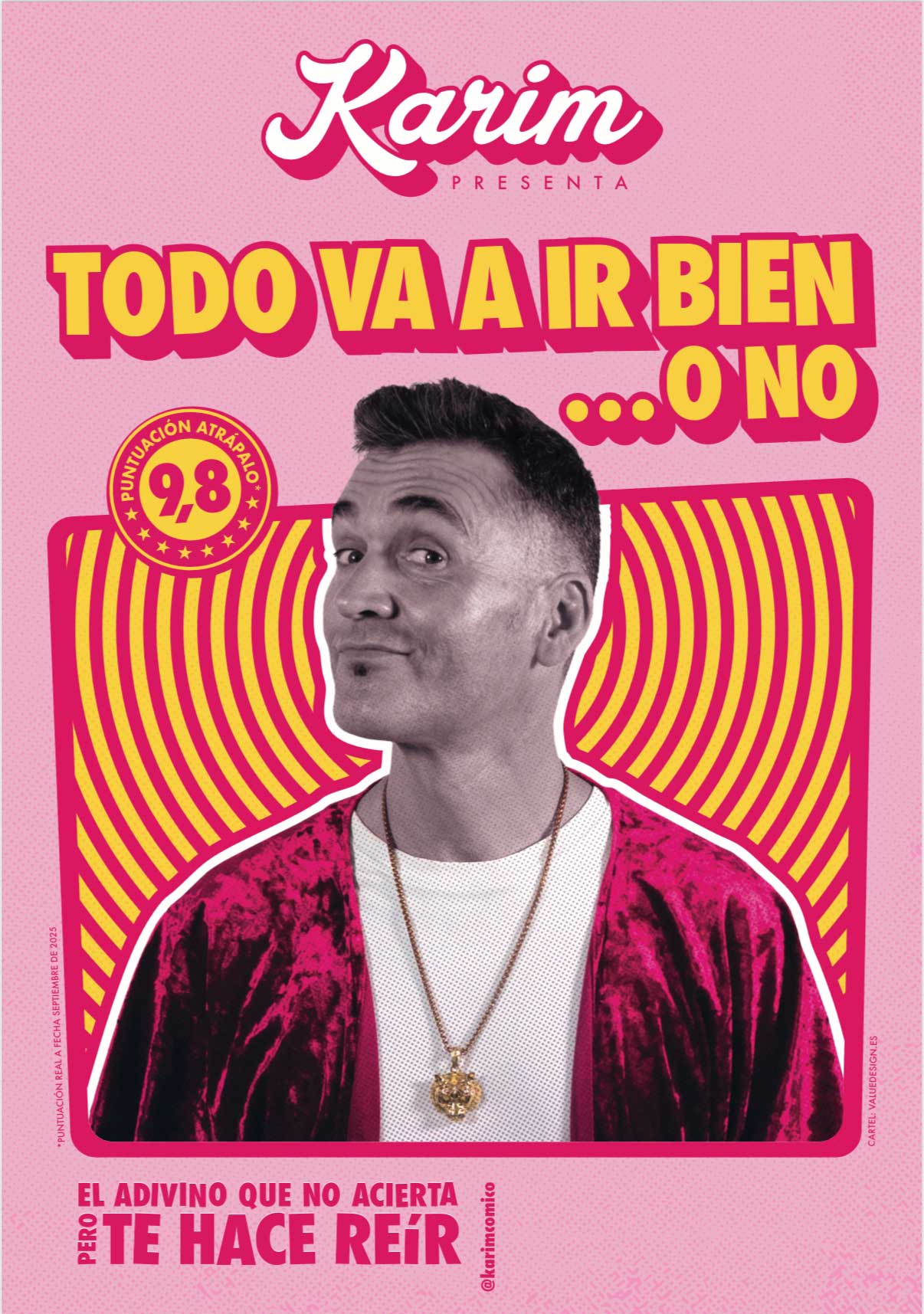Karim presenta Todo va a ir bien...o no, el monólogo con más futuro del momento, un show de improvisación, con monólogos, magia y videncia, pero sobre todo con mucho humor, porque la risa siempre es y será un acierto. Viernes 30 de enero de 2026.