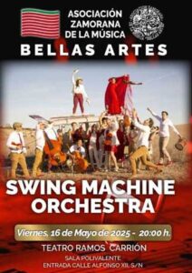 Swing Machine Orchestra. Organiza Asociación Zamorana de Bellas Artes. Colaboran Diputación de Zamora y Caja Rural. 16 de mayo de 2025